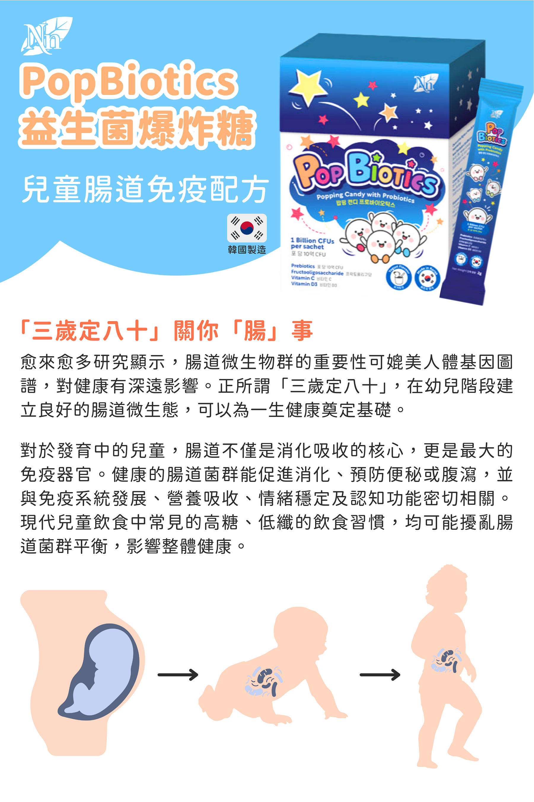 童肠道免疫配方 —— 专利菌株组合,支援肠道与免疫健康