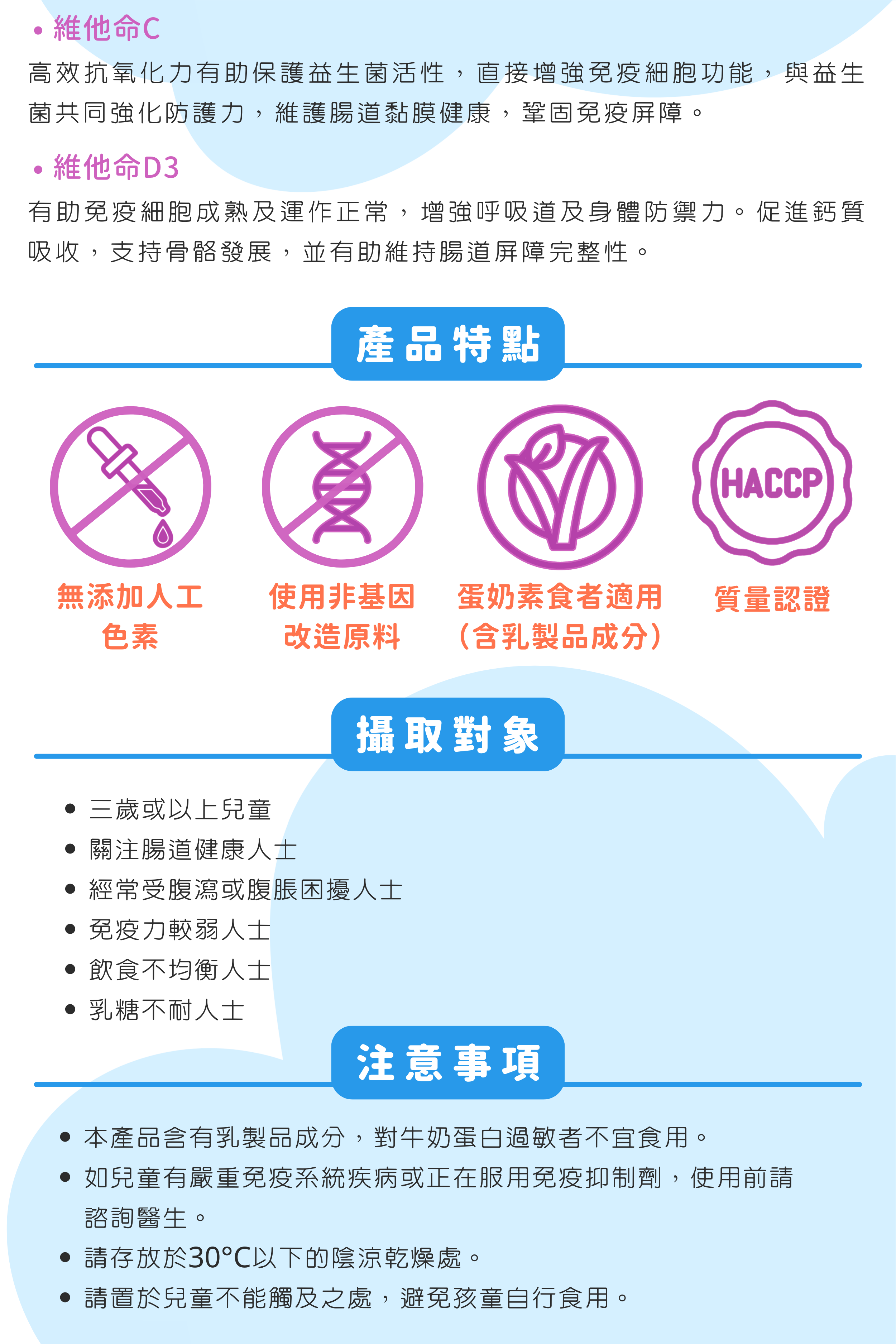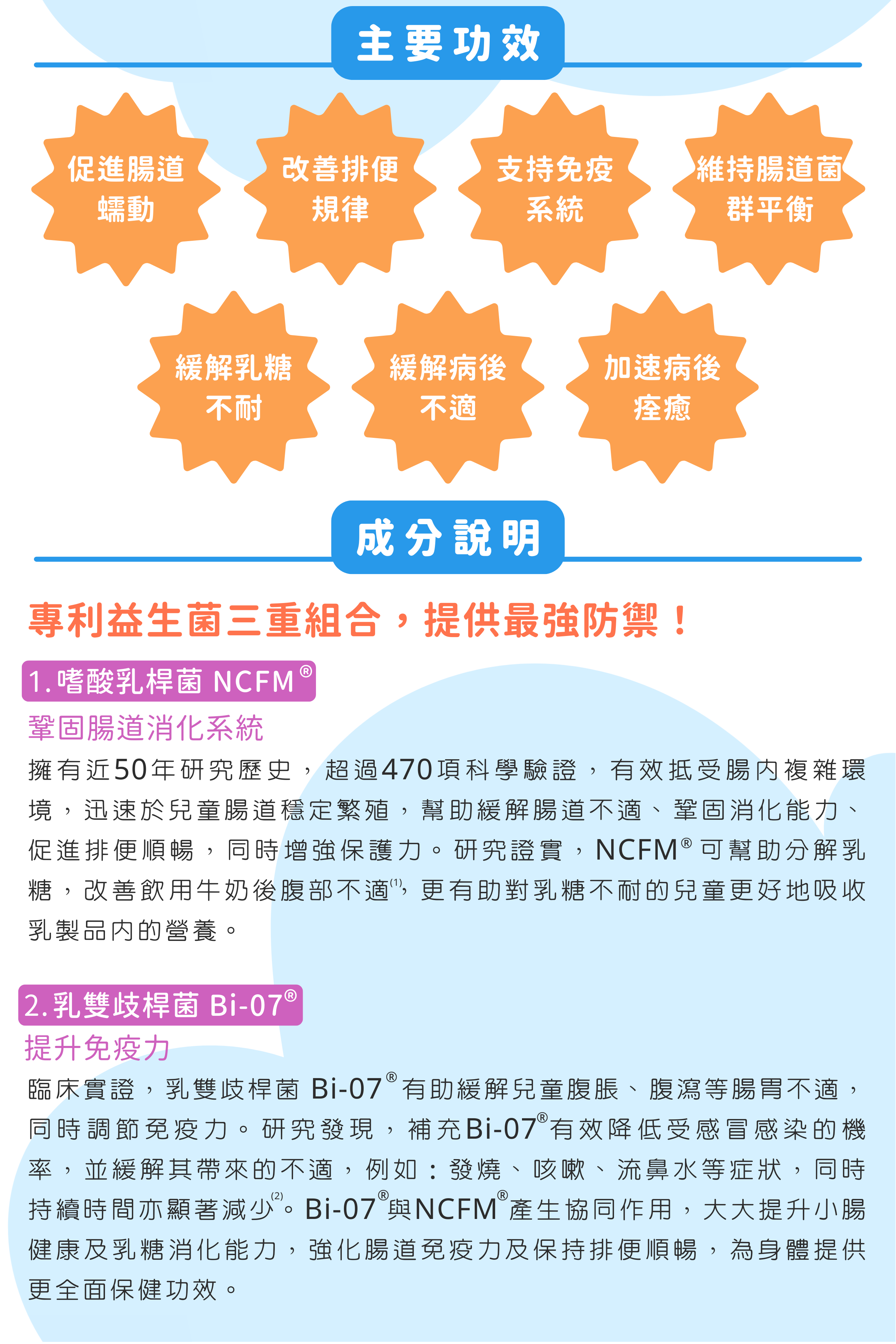 全方位支援儿童消化道顺畅、强化免疫防御、稳定肠道环境,并有助缓解乳糖不耐所引发之不适。