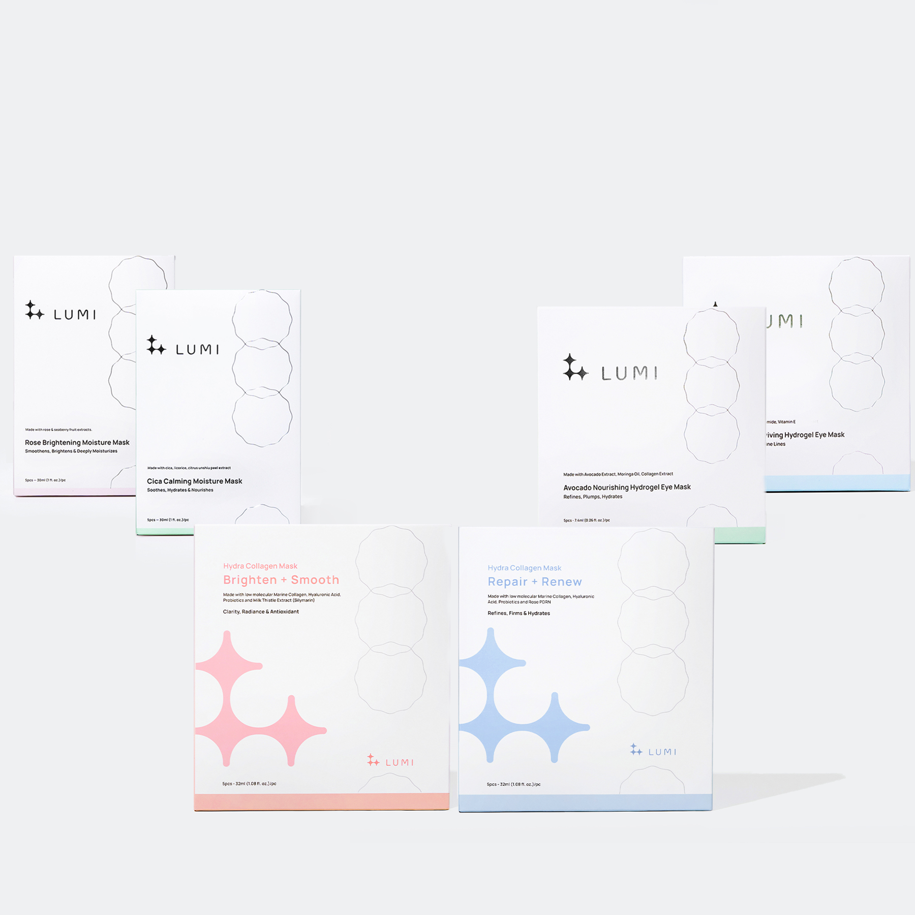 水润胶原蛋白面膜含有低分子量(50,000 PPM)海洋胶原蛋白、 玻尿酸和益生菌,能深层补水滋养肌肤,结合绣球花叶萃取、茶树复合物和乳蓟萃取等亮肤成分,有效提亮肤色及淡化细纹